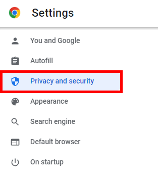 1.3. Select Privacy and Security from the left-hand navigation (Fig. 2).
