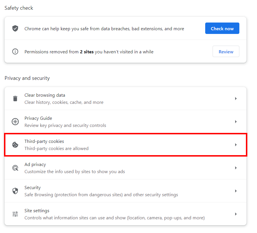 5.4. Make sure the toggle to the right of Block third-party cookies is off (Fig. 19).