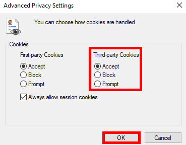 4.4. Under Third Party Cookies, select Accept and then OK (Fig. 15).
